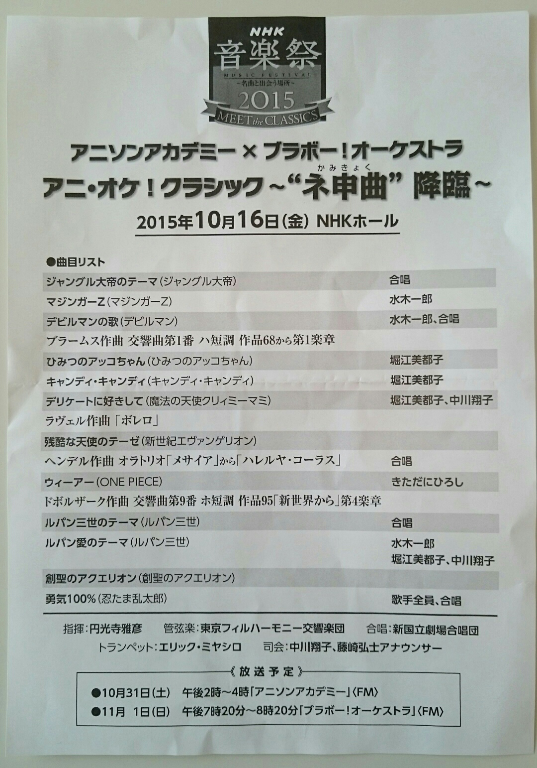 更に再び、アニメで使われたクラシック曲の演奏だったのですが。