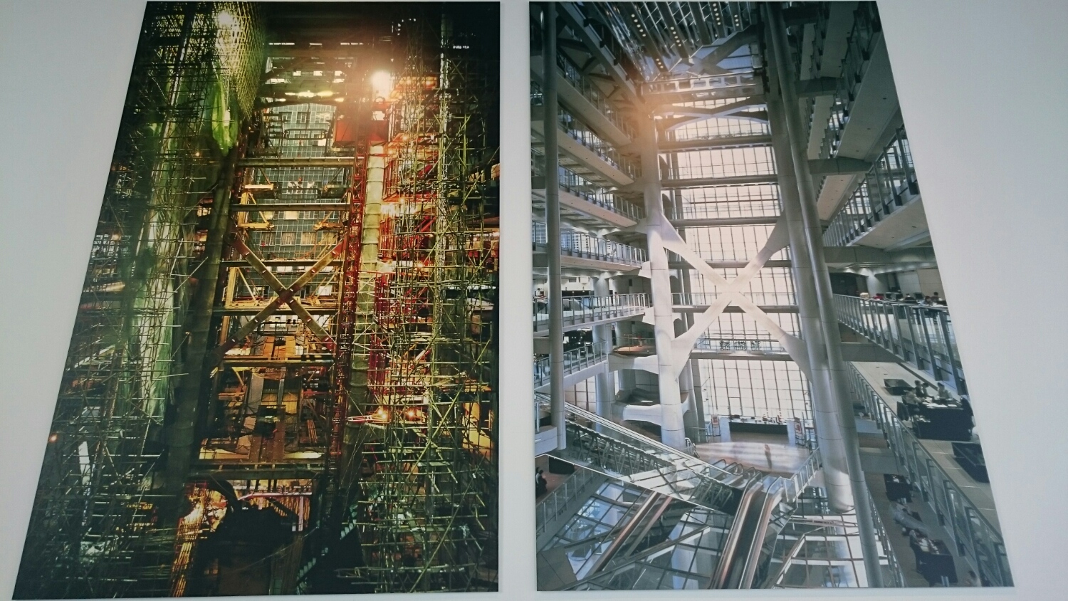 香港上海銀行本社、の写真。左が建築途中、右が完成後なんですが、左の方が断然好みだったりします(笑)