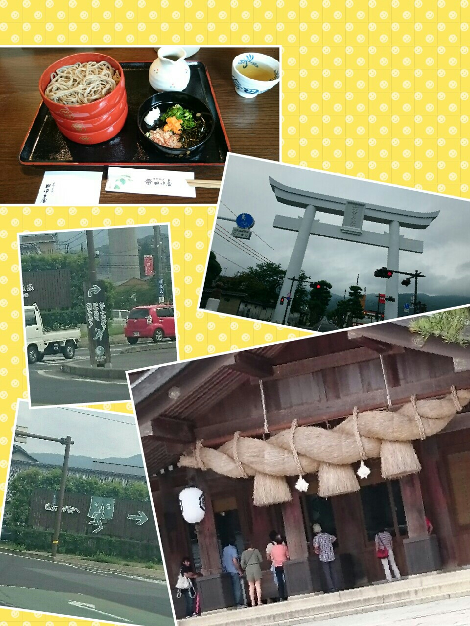 中段右:出雲大社鳥居 中段左:玉造温泉郷入口、ユーモラスで良かった