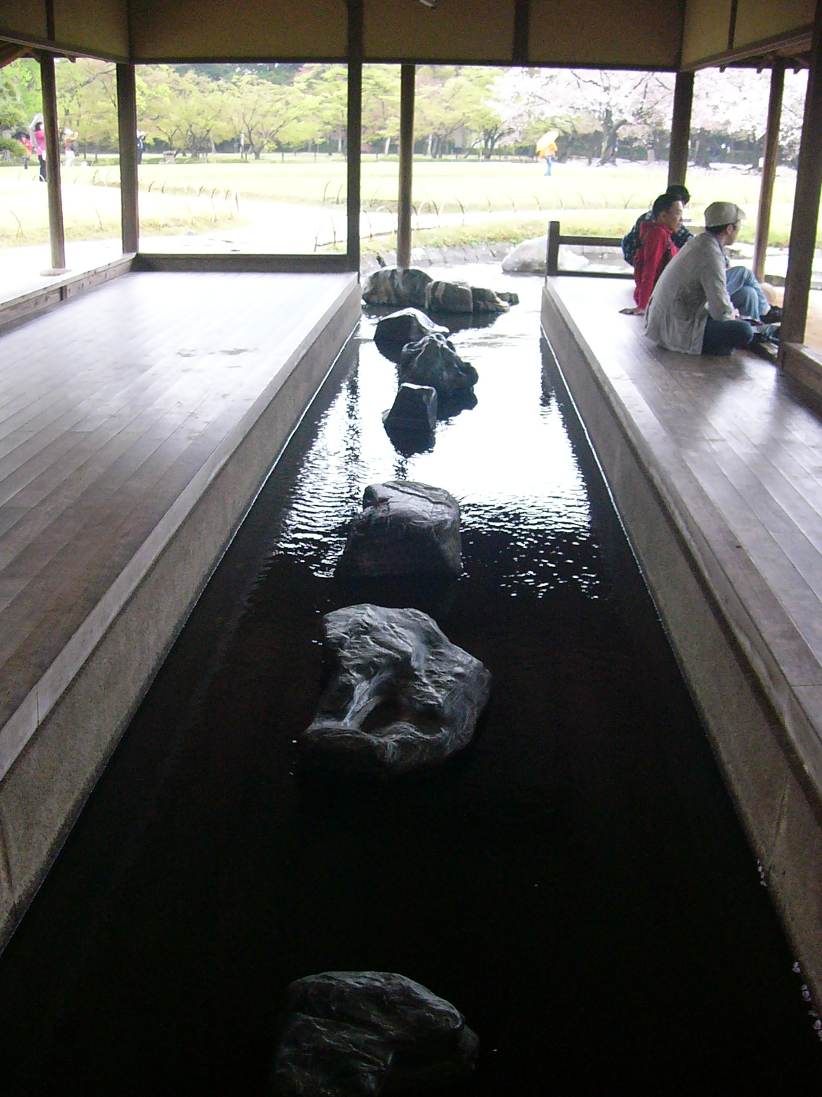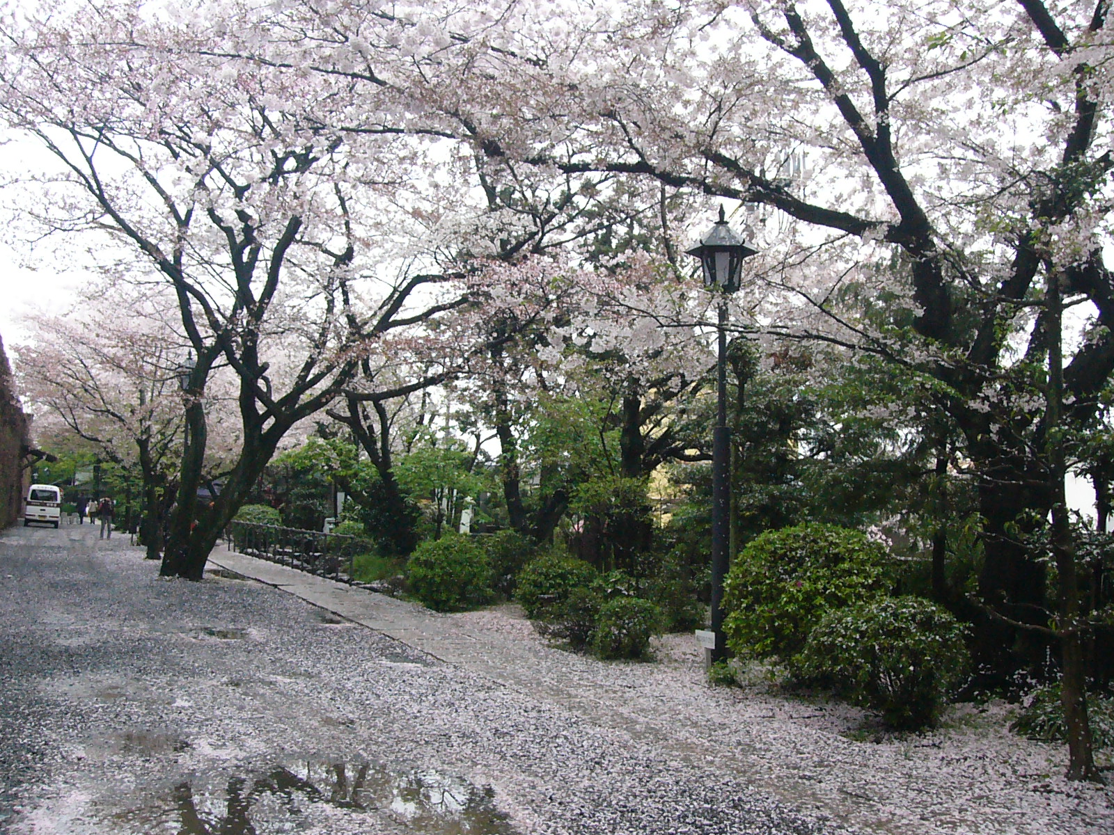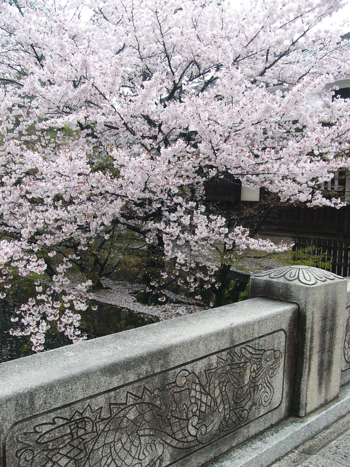 水面に桜が散ってとてもきれいでした。いい時期に観光行けたなぁ、岡山もそうだったけど、桜がちょうど散り始めるくらいで、風情があって良かった。