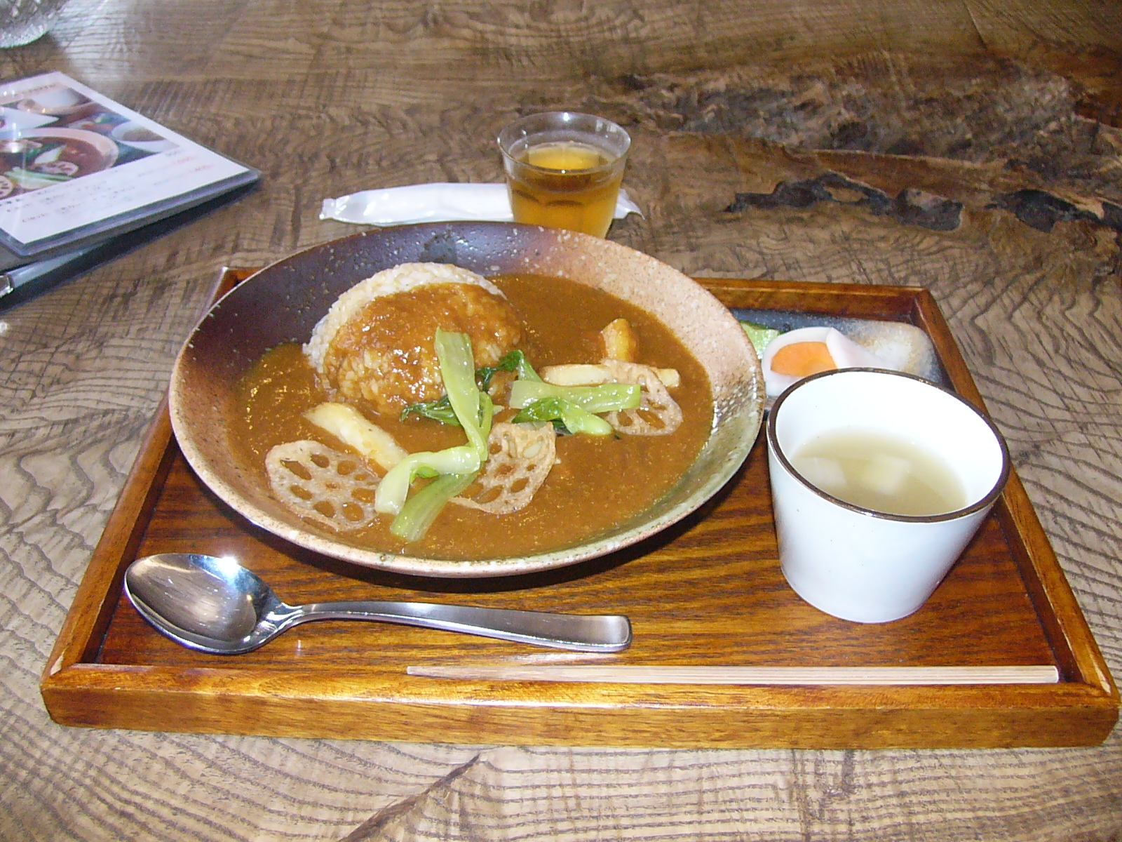 三宅商店では、平日では1200円?のカレーセットが、土日は1000円とのこと。季節野菜の素揚げがのってるカレーと、野菜スープ、浅漬け。そして食後にコーヒー。カレーは、あとからじわっとスパイスが効いてくる、食べやすい辛さでした。奥はお座敷席、1席だけ4人掛けのテーブル席があり、あとは8人くらいで使える大テーブルがドン。おひとりさまでしかもブーツ脱ぎたくなかったので、大テーブルの隅に陣取ったのですが、入口すぐが雑貨販売スペースになっていたためちょっと落ち着かなかったかな。衝立でもあるといいな。