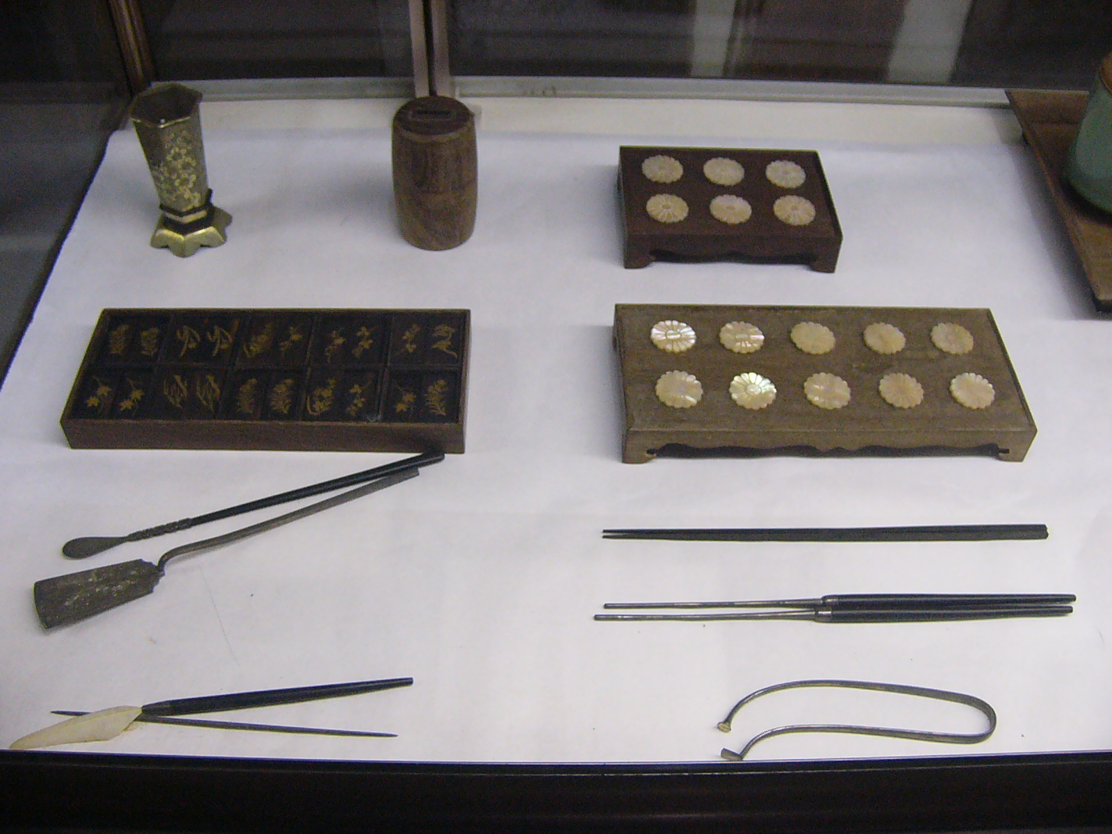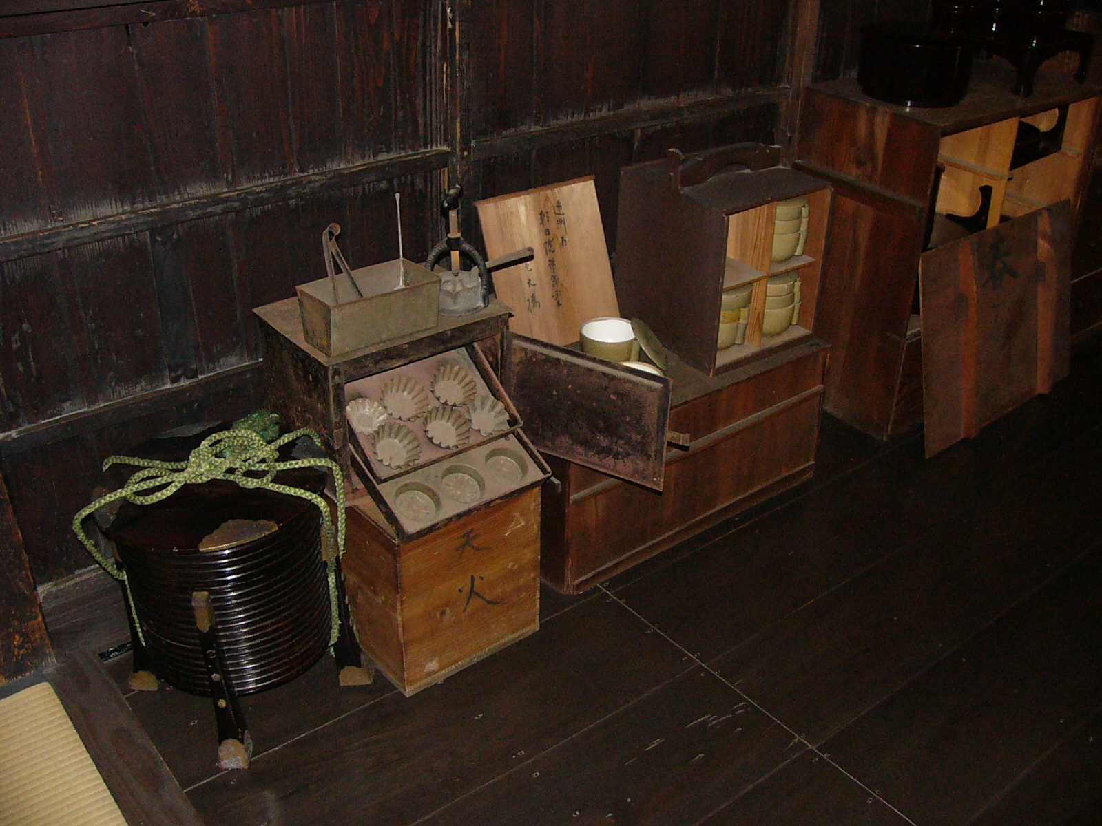 右:台所。ここは割れ物が多いからか、立ち入り禁止。江戸時代~の資料が多い中、マドレーヌ型がある! 大奥さんに尋ねたところ、明治に入ってからの最後の奥さん(?)がハイカラな人で、マドレーヌ型などを取り寄せては焼いてたんだとか。また、その奥さんがお作法に厳しい人で、その当時の大橋家でお勤めをしていた女中さんが他所へ出るときは、「大橋家でお勤めされてた人なら」と絶大な信頼があったそうです。