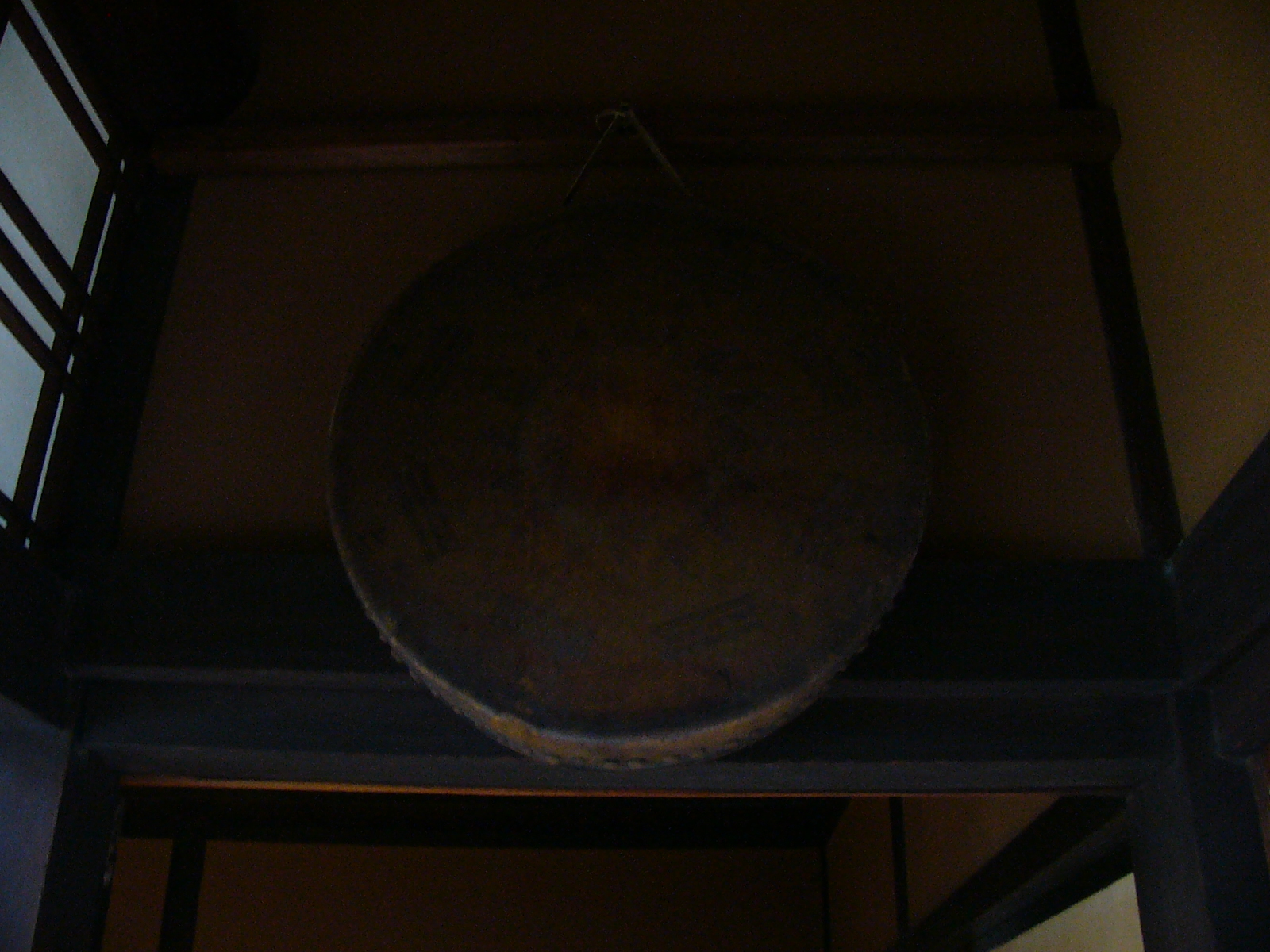 中:会合などの開始や終了を告げる鐘。本来は、別のものが掛けられていたそうですが、盗難にあって、今はこれが掛けられているそうです…「あんなもの盗ってもお金にならないんだから、そのままにしておいてくれればいいのに」と大奥さんがおっしゃってました。