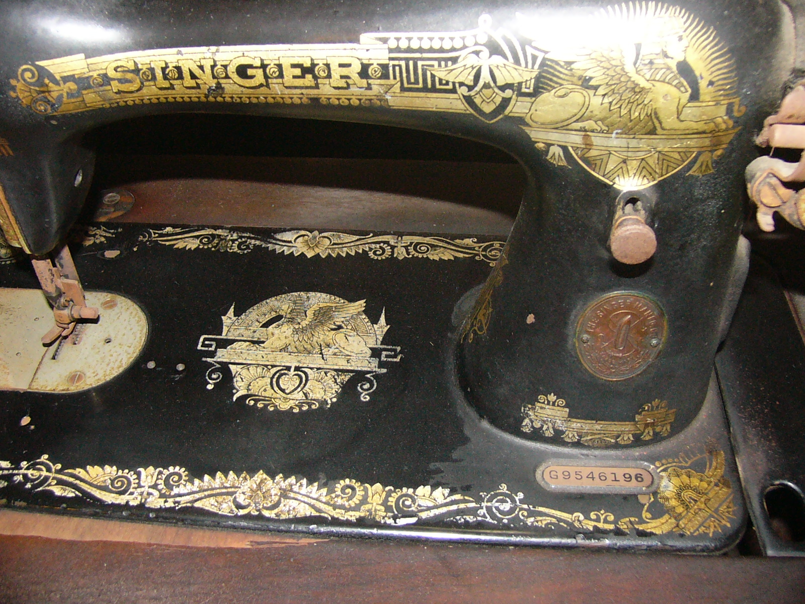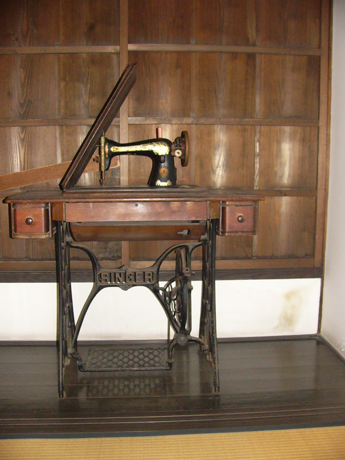 左2枚:展示品のミシン。美しい…細かい意匠もびっしり。