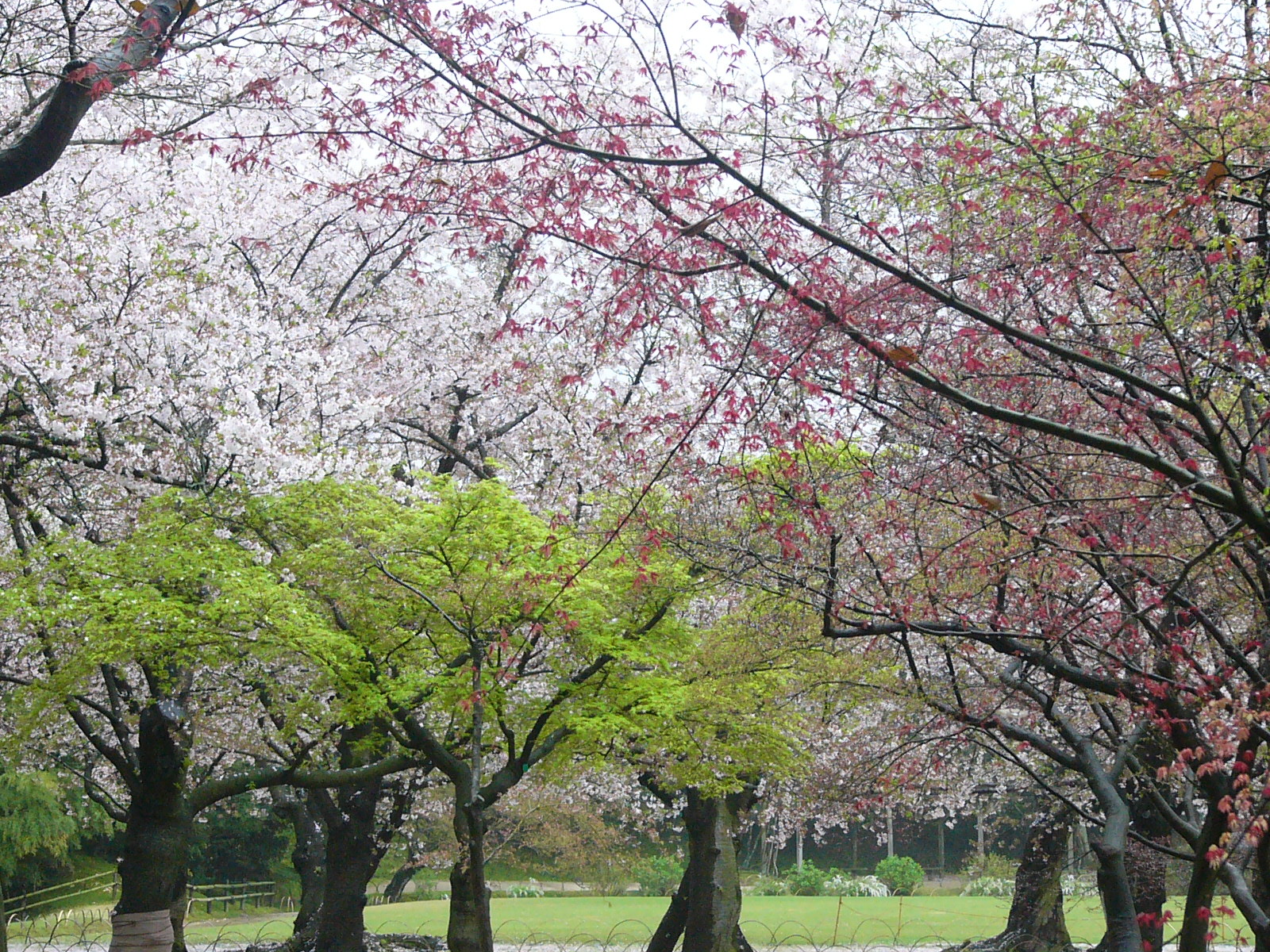 中:千入の森(ちしおのもり)、桜・新緑・紅葉(?)が一度に見られました。隣は桜満開で、結婚式の前撮りされてて、海外からの観光のかたがめっちゃ嬉しそうにしてました。