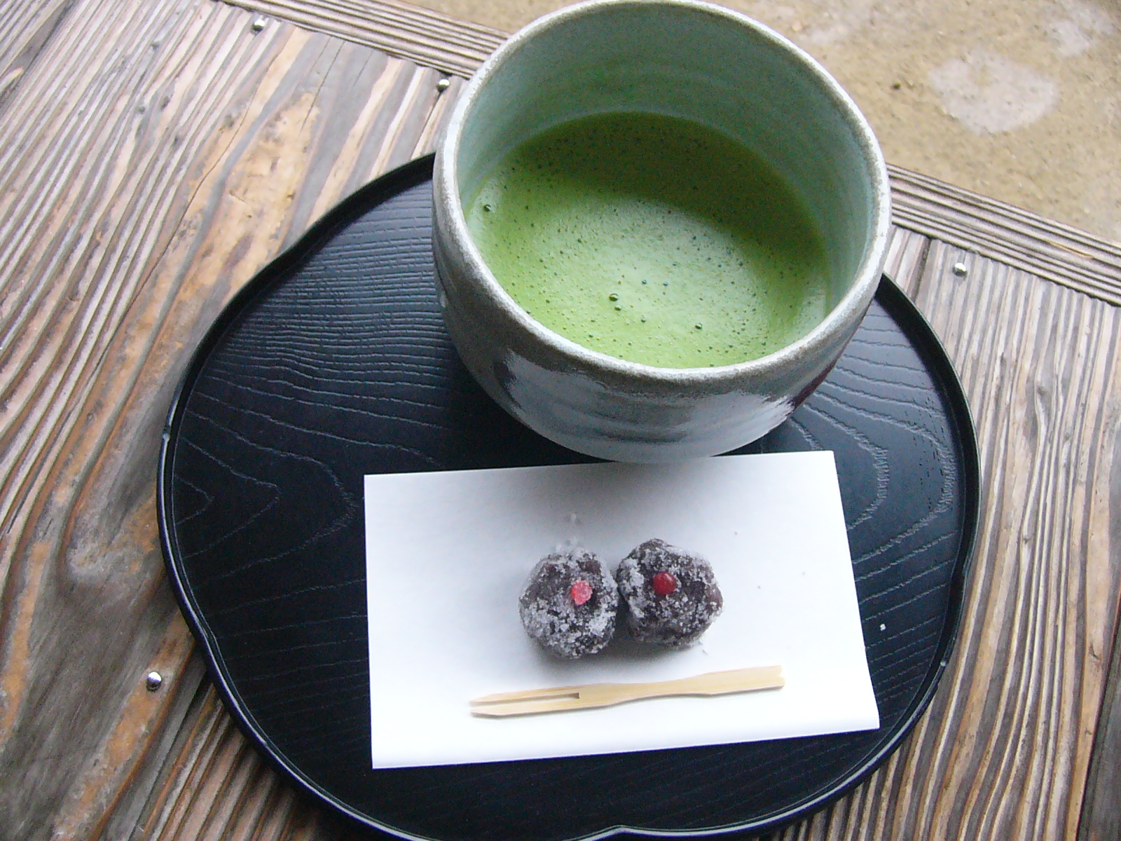 馬場近くのお土産屋さんでお茶。なんだったかなー、丹頂モチーフの和菓子。あんころ玉みたいなものでした。ここで、雨をながめながらぼんやりすることしばし。