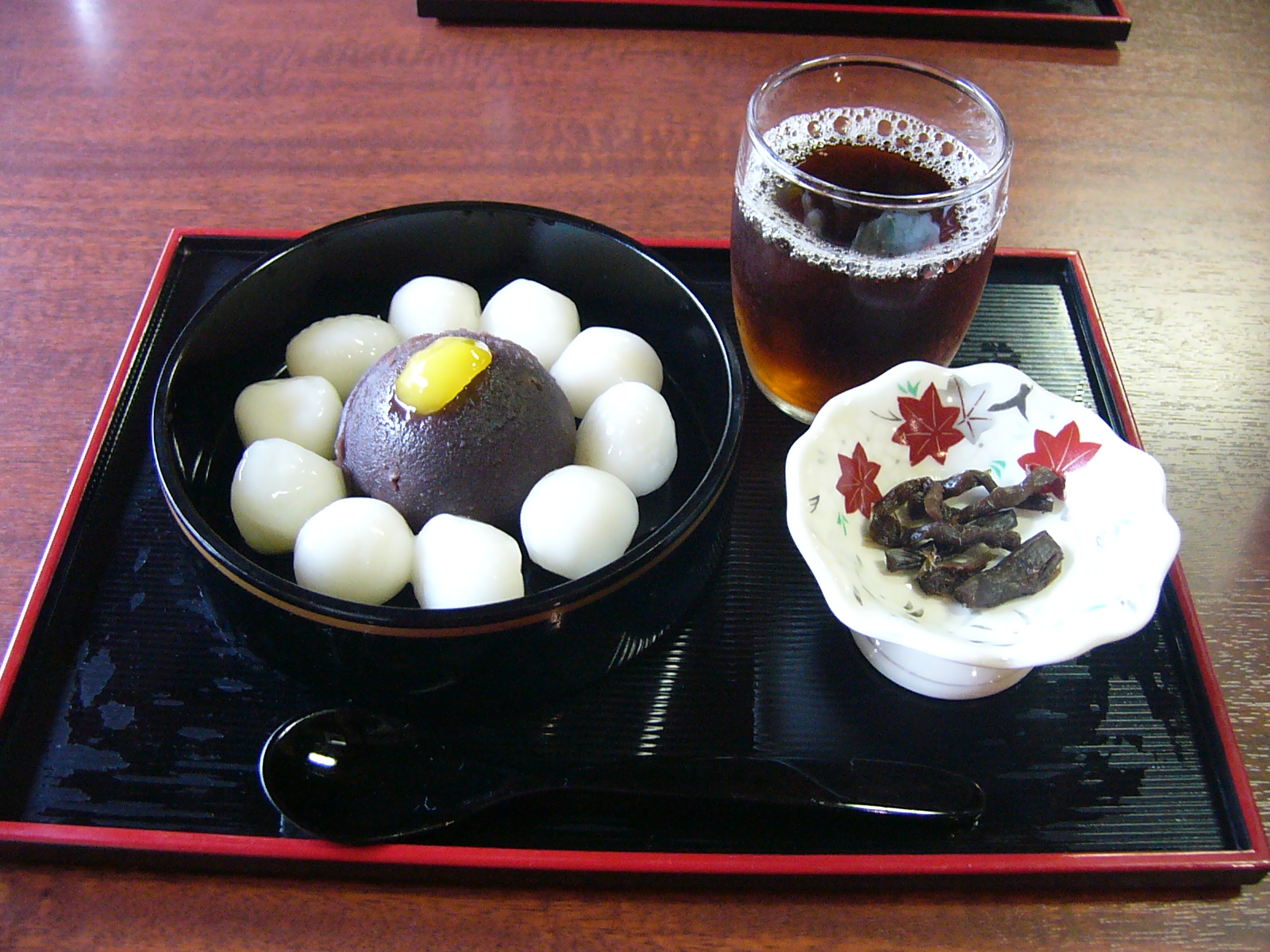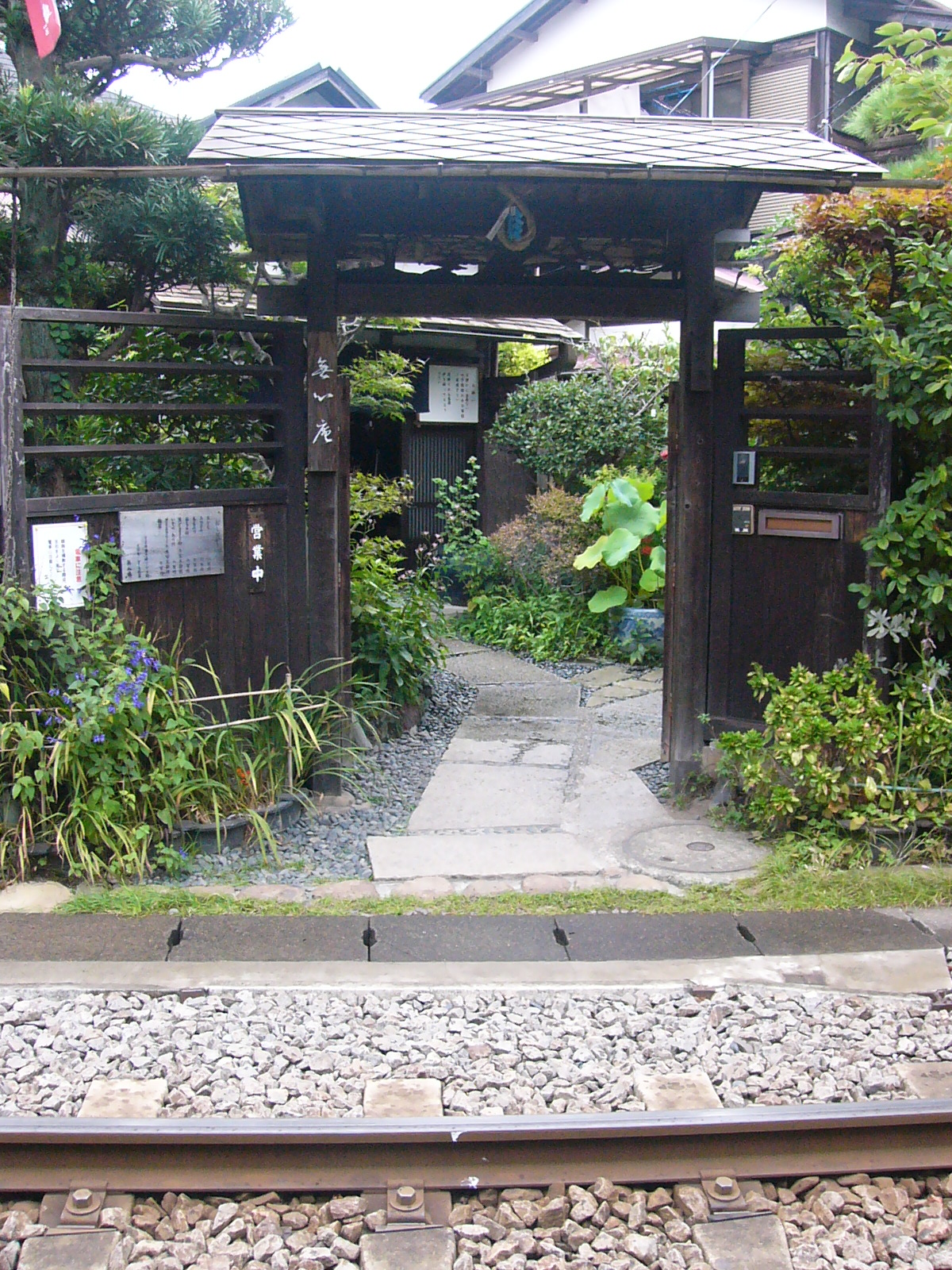縁側脇の席ではなかったので撮影は控えましたが、生垣越しに、江ノ電が通って行くのが見えます。駅に止まる直前でスピードが遅いからか、うるささはほとんどありません。だいたい700~800円くらいで、ぜんざいや白玉などの甘味がいただけます。きゃらぶきが添えられてて嬉しかった。お昼は、お食事もあるようです。