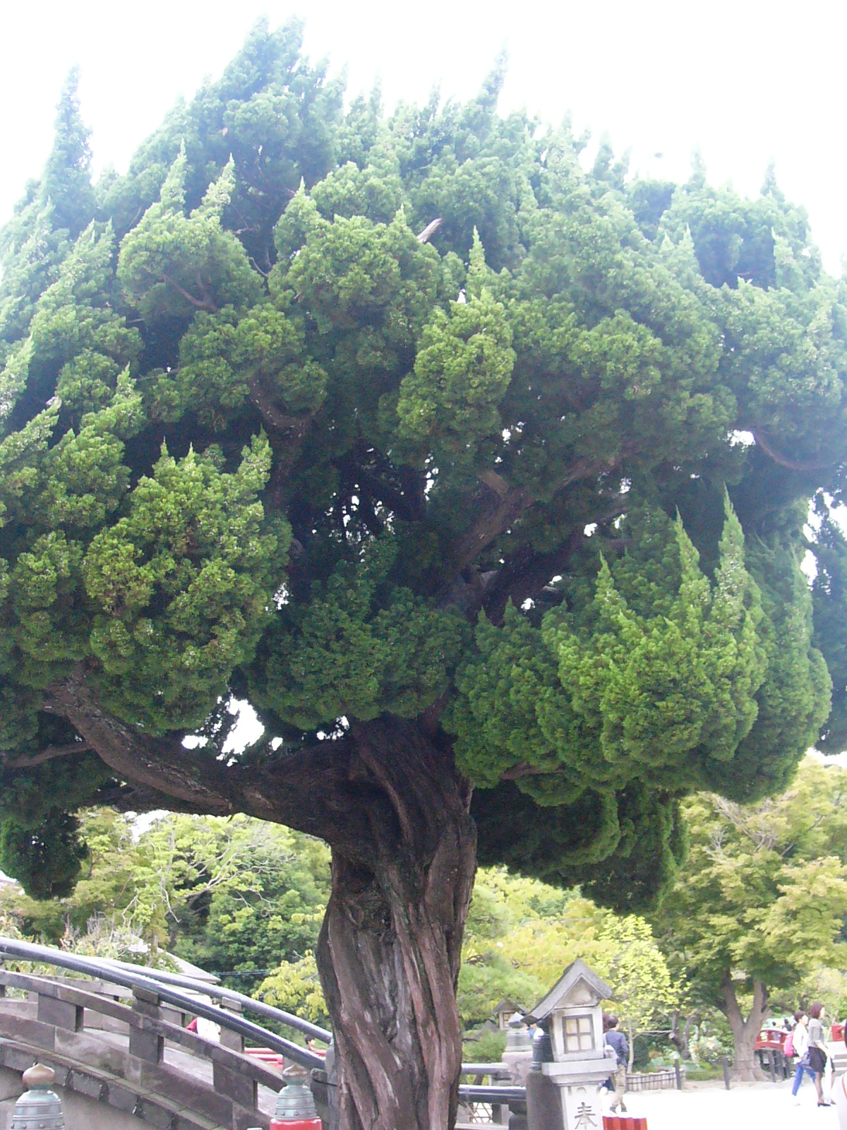 境内、太鼓橋横に合った妙な木。スギの仲間? 葉がニョキニョキしてて面白かったので。