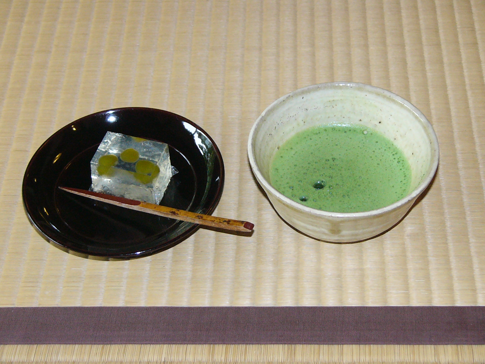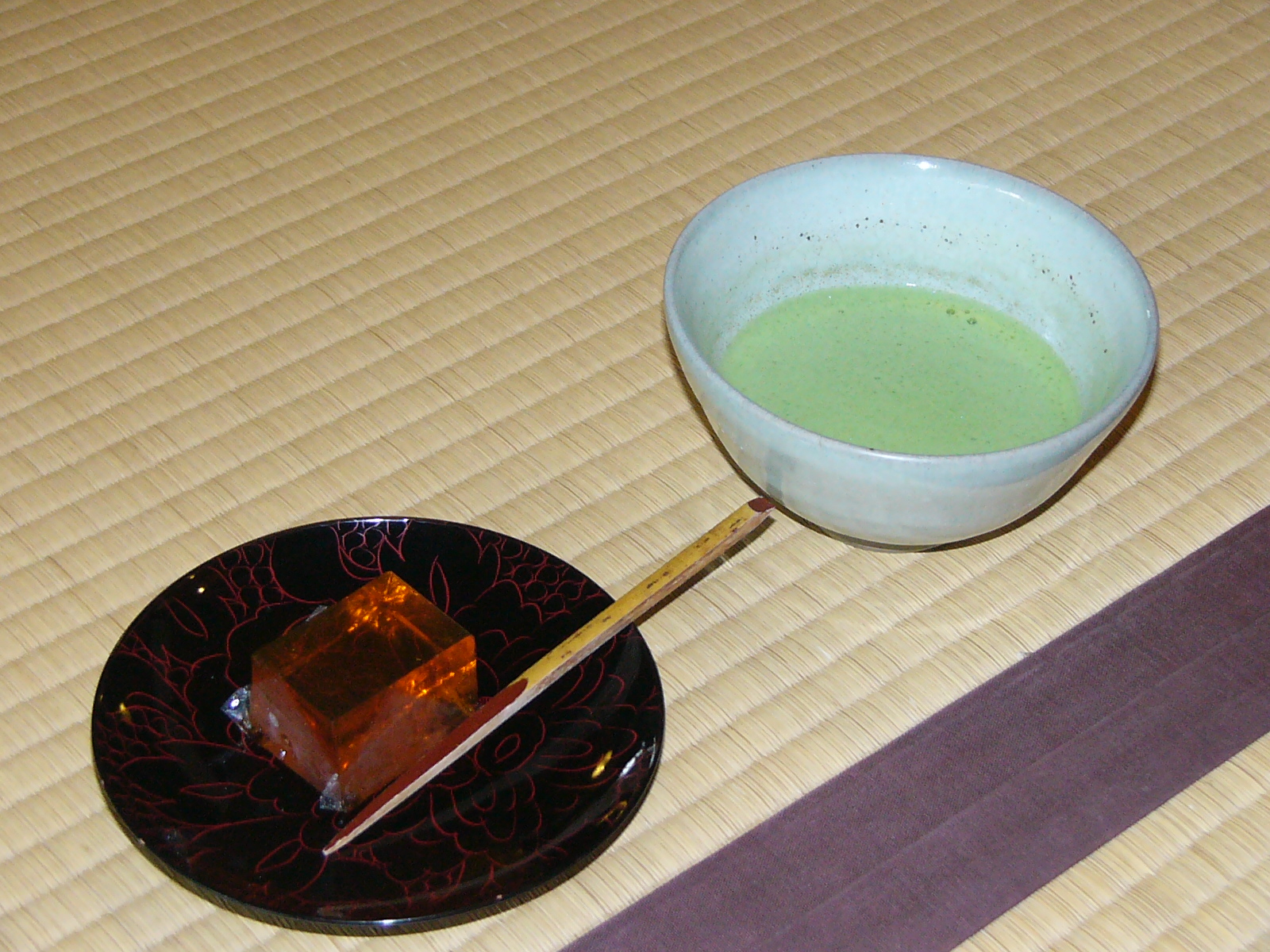 お茶席でお菓子をいただきました。こっちのお茶のほうが美味しかったです ( ・ㅂ・)و ̑̑