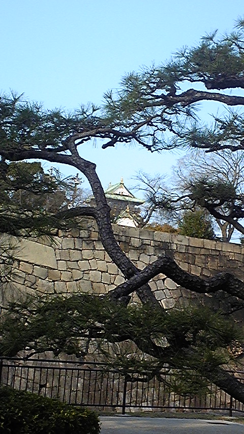 お堀の外側からチラリと見える天守閣、一応記念に写真撮りました。